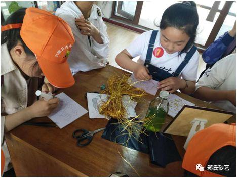 參觀后,五十余名同學(xué),自己動手體驗描圖、粘絲、填砂等砂畫制作過程。