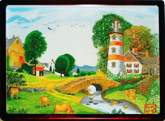 砂畫,顧名思義,就是用砂子做畫。砂畫結(jié)合現(xiàn)代人的審美觀,依托深厚的文化底蘊和文化內(nèi)涵。人們在電視上經(jīng)常看到藝術(shù)大師在一個底部可照亮的白色或透明的膠硬板,然后把細小的沙子撒在上面,用手指在上面畫畫,揮灑自如,惟妙惟肖,但是這種沙畫好看卻不能保存和攜帶,我們在霧靈山腳下尋覓到的鄭氏砂畫是一種能夠攜帶的藝術(shù)作品。