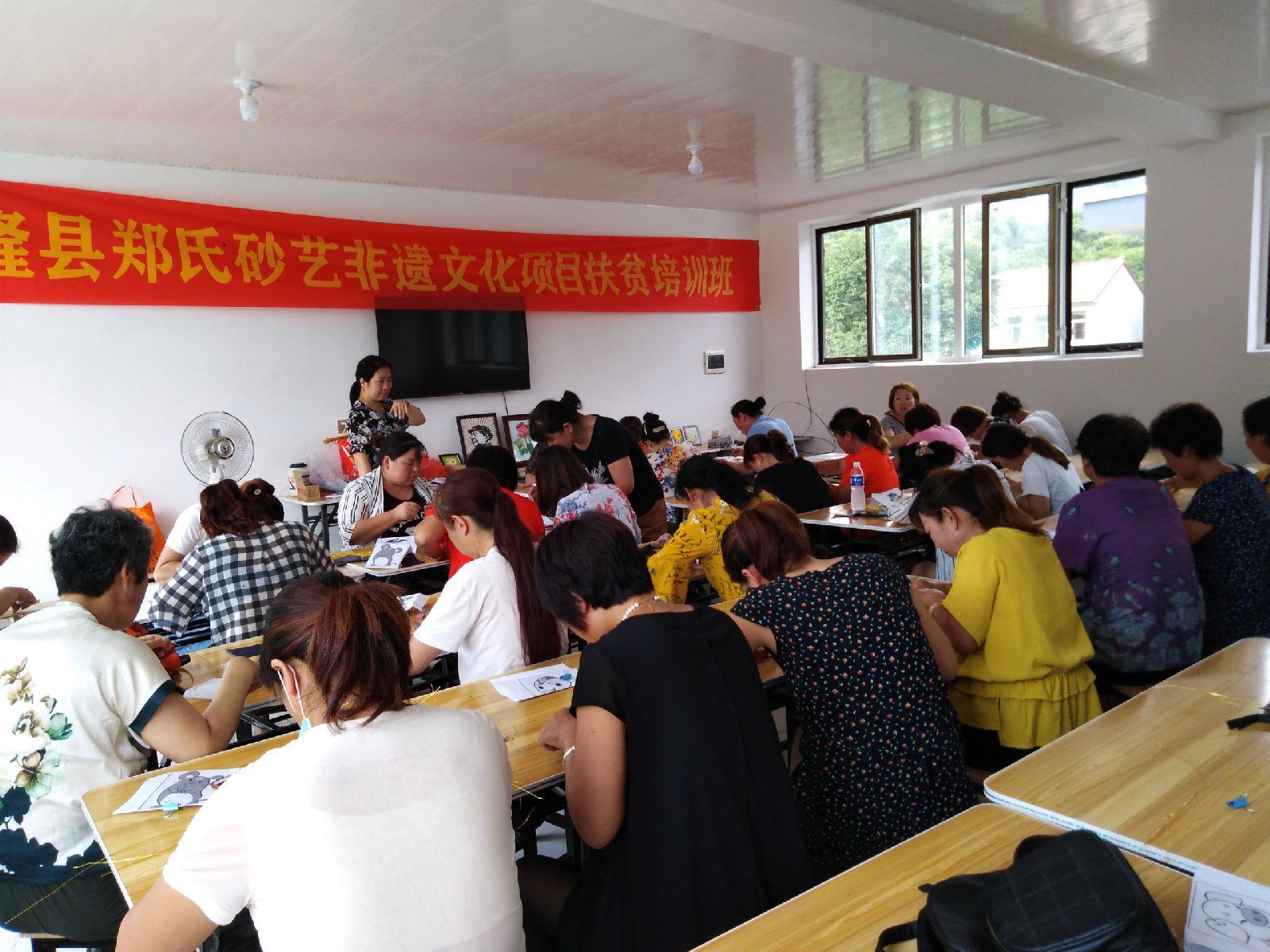 此次鄭氏砂藝非遺文化扶貧培訓班開班時間為期一個月,培訓范圍在蘑菇峪鎮(zhèn)的五個村,為600余位村民傳授砂畫制作手藝。為增加他們的農余收入,為文化扶貧工作貢獻一份力量。