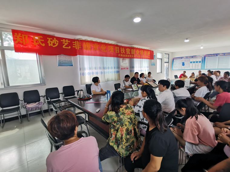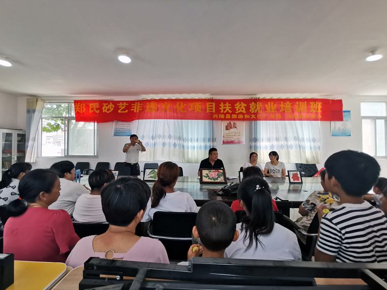 此次參加培訓(xùn)人員108人,其中:婦女93人。簽訂扶貧就業(yè)協(xié)議84件,目前該公司正在對(duì)其他5個(gè)貧困村開展砂畫培訓(xùn),鄭氏砂藝真正把精準(zhǔn)扶貧落到了實(shí)處,用自身獨(dú)特的傳統(tǒng)文化技能,帶動(dòng)全縣貧困人口脫貧致富。