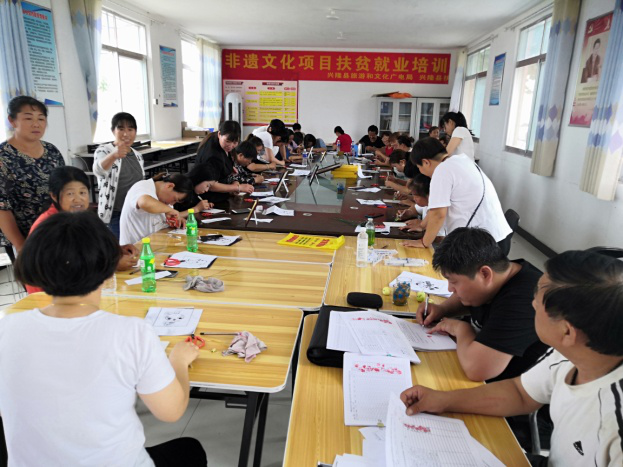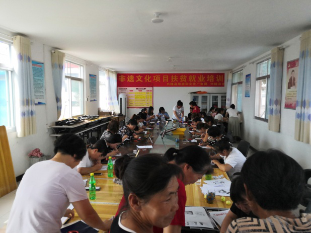 車河口村位于大杖子鎮(zhèn)政府東部2.5公里處,系潘家口水庫移民后靠村,處在車、柳、灤三河交匯點(diǎn)上。該村擁有人口1386口人,388戶。其中:貧困戶134戶,涉及貧困人口429人。由于大部分青壯勞力大都外出務(wù)工,村里只剩婦女、老人和兒童留守在家,婦女們除了給幾畝地玉米除除草,剩余時(shí)間全部用在哄孩子和閑聊上。鄭氏砂藝非遺文化扶貧項(xiàng)目的介入,得到廣大村民的積極響應(yīng),紛紛來到村委會(huì)參加培訓(xùn),她們仔細(xì)聽講,認(rèn)真研學(xué)。學(xué)員們從描摹到布絲、從調(diào)膠到鋪砂,不放過每一個(gè)細(xì)節(jié)。在手中的作品上展現(xiàn)自己的才華。目前公司已對(duì)該村成立“車河口村非遺扶貧就業(yè)工坊”,在貧困戶中選出了技術(shù)過硬、能力較強(qiáng)的婦女擔(dān)任車間主任,目前該就業(yè)工坊已正式運(yùn)轉(zhuǎn)。