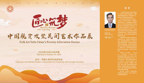 由中國(guó)人民對(duì)外友好協(xié)會(huì)主辦的“匠心筑夢(mèng)—中國(guó)脫貧攻堅(jiān)民間藝術(shù)作品展”于10月24日(聯(lián)合國(guó)日)正式開(kāi)幕。中國(guó)人民對(duì)外友好協(xié)會(huì)會(huì)長(zhǎng)林松添大使題寫(xiě)前言,聯(lián)合國(guó)代理駐華協(xié)調(diào)員桑愛(ài)玲女士向展覽發(fā)來(lái)賀詞。