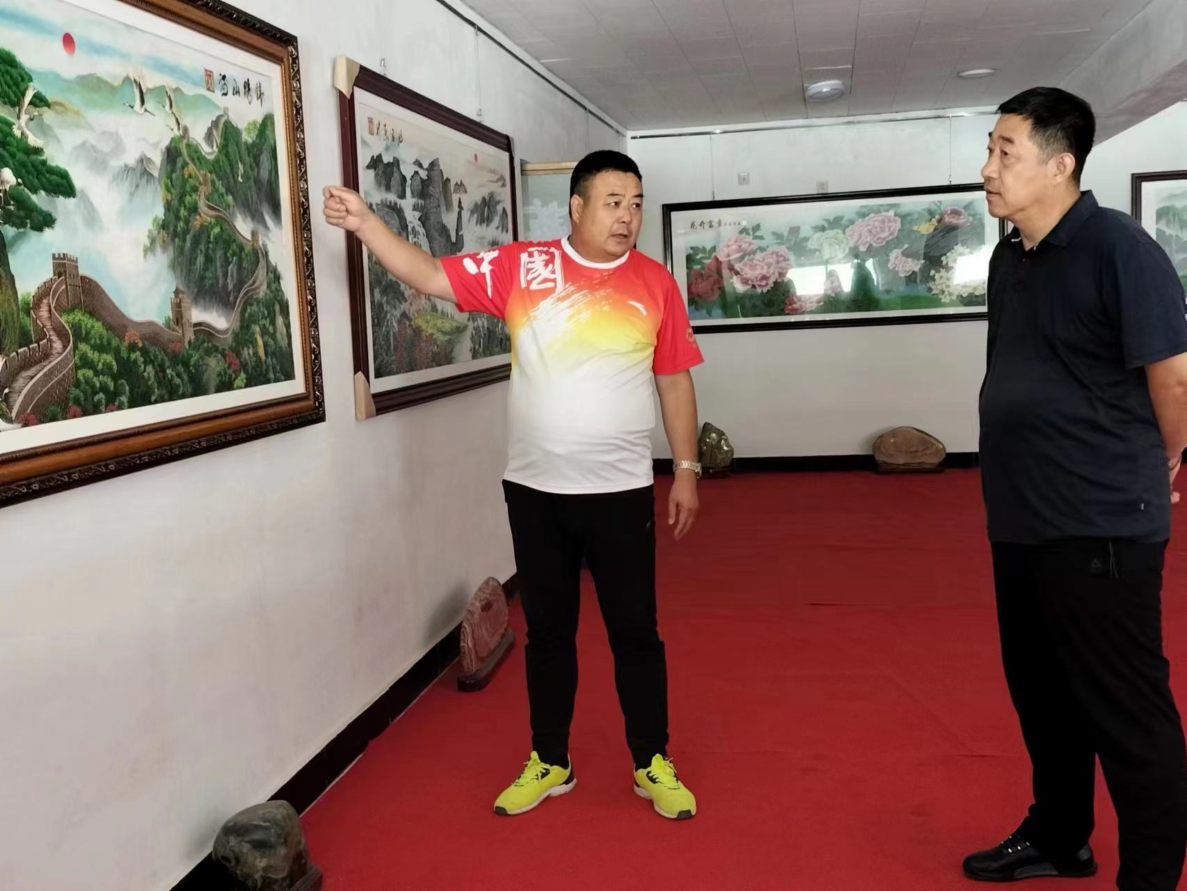 王智慧經(jīng)理等人在鄭總的陪同下參觀了砂畫制作車間和鄭氏砂藝非遺文化展館,參觀過程中,鄭總對鄭氏砂藝(畫)的發(fā)展歷程、制作流程、企業(yè)榮譽和發(fā)展前景做了簡單介紹。同時鄭總就企業(yè)代表性砂畫及其制作時采用的材料及背后的歷史文化進行了簡略描述。