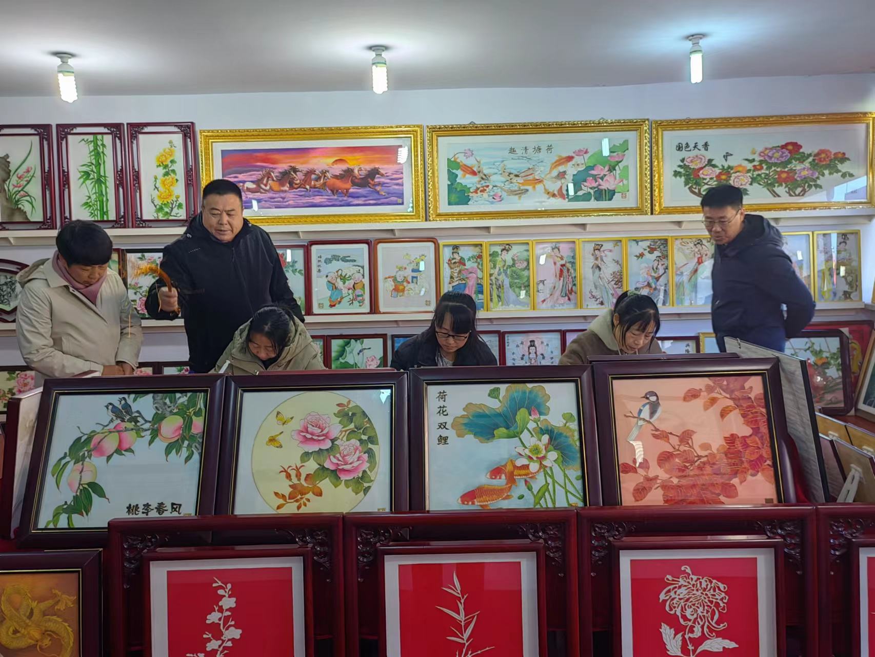丁宇超副部長一行在鄭氏砂藝董事長鄭鐵軍的陪同下,逐一參觀了鄭氏砂藝展覽館和文化名家工作室,觀看了技師的砂畫制作手法,以及砂畫主要材質(zhì)和制作步驟,對(duì)鄭氏砂藝傳統(tǒng)技藝頗為驚訝和感嘆,贊嘆一幅幅栩栩如生的砂畫作品,就是我們的畫師用一雙雙纖纖玉手這樣一點(diǎn)一點(diǎn)地制作完成的,簡直是妙手回春,點(diǎn)砂成金。