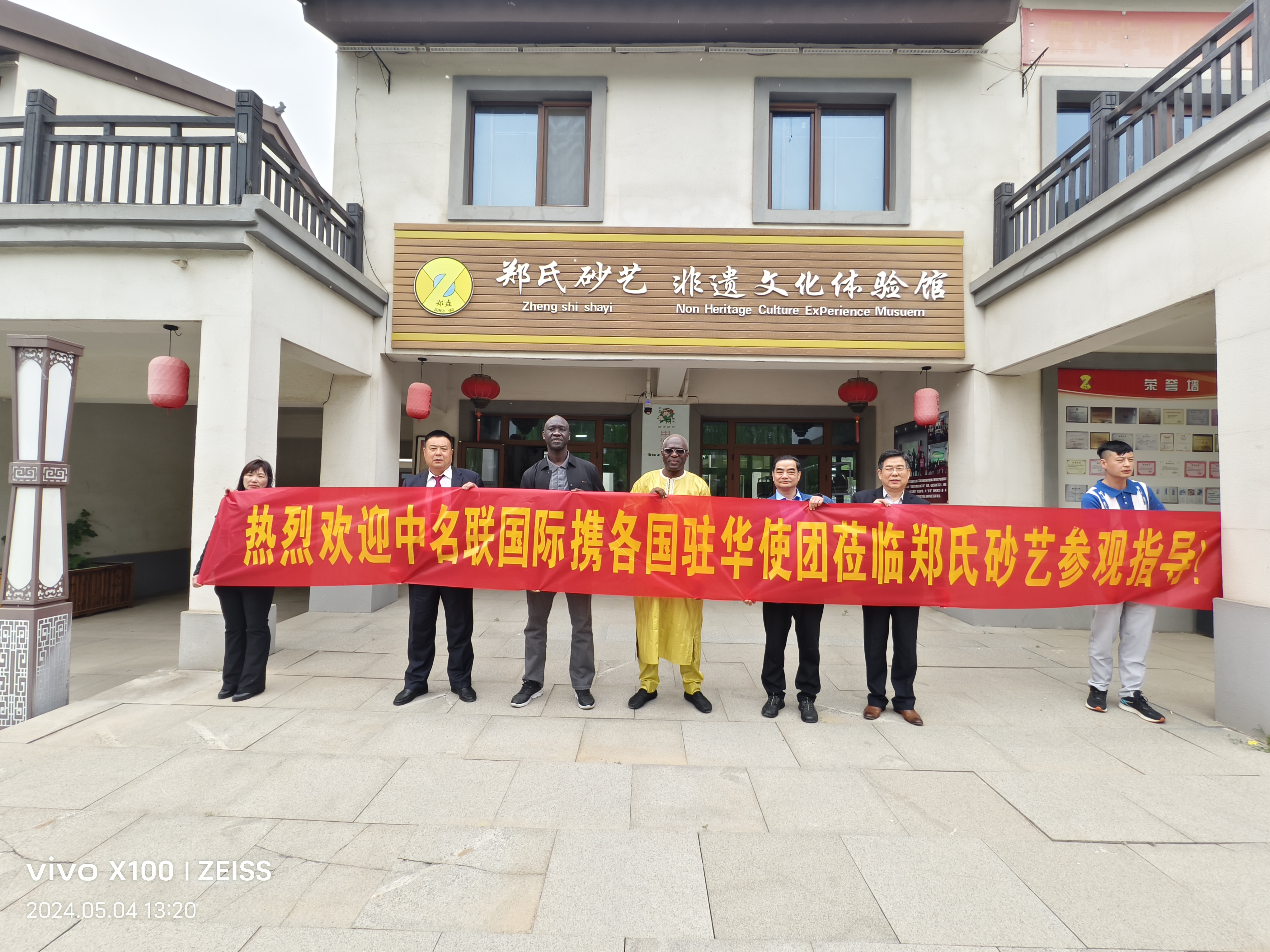 又是一年春暖花開時,值此“五一”勞動節(jié)之際,應(yīng)興隆縣鄭氏砂藝文化有限公司(以下簡稱鄭氏砂藝)邀請,由中名聯(lián)國際引薦,5月5日上午,科特迪瓦共和國駐華大使館國防武官阿達(dá)馬·科內(nèi)(空軍準(zhǔn)將)、塞內(nèi)加爾共和國駐中國大使館副官阿壩·瓦德上校蒞臨鄭氏砂藝進(jìn)行參觀考察。訪問人員在中名聯(lián)集團(tuán)董事長戴本領(lǐng)和趙蘋女士、邯鄲市華冶工貿(mào)有限公司黨委書記、董事長張書明、鄭氏砂藝董事長鄭鐵軍等人員的陪同下參觀了后苗圃“鄭氏砂藝”非遺展館和青松嶺水鎮(zhèn)“鄭氏砂藝”非遺博物館。此次參觀活動不僅讓外國友人領(lǐng)略了“鄭氏砂藝”的深厚文化底蘊(yùn),也促進(jìn)了中外文化的民間交流與融合。