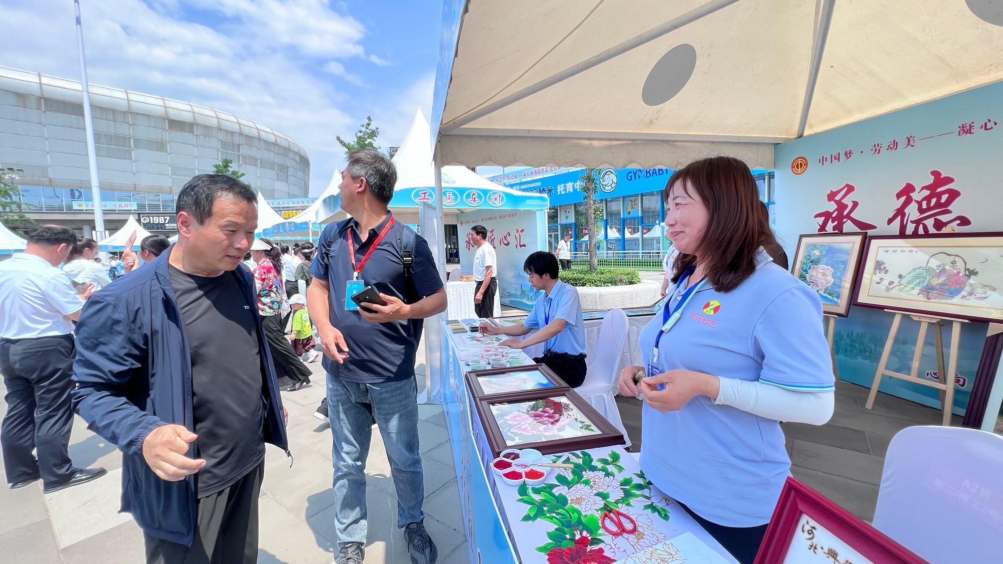 為向全國(guó)職工展示我省、我市工匠代表典型創(chuàng)新成果、精湛的操作技能,非遺傳承以及智慧文創(chuàng)的文化魅力,同時(shí)在奧體中心還舉辦了“承德匠心匯——工匠•市集”展示展演活動(dòng),鄭氏砂藝(畫(huà))等二十余個(gè)承德非遺文化項(xiàng)目的勞模工匠代表匯聚一堂,向全國(guó)職工和當(dāng)?shù)厥忻裾故玖俗陨淼母叱妓嚕宫F(xiàn)了承德工匠們堅(jiān)守執(zhí)著、精益求精、專(zhuān)業(yè)專(zhuān)注、追求極致和一絲不茍的工匠精神。