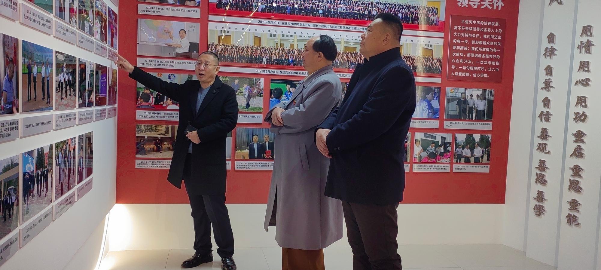 活動當日,六道河中學教育集團校長、六道河中學黨支部書記賈利民對到訪嘉賓表達了誠摯的歡迎,并親自引導參觀了校史展覽館。展覽館內,珍貴的歷史照片與實物展品,生動地呈現了六道河中學的發(fā)展歷程與輝煌成就,充分彰顯了學校先進的教育理念與豐碩的育人成果。