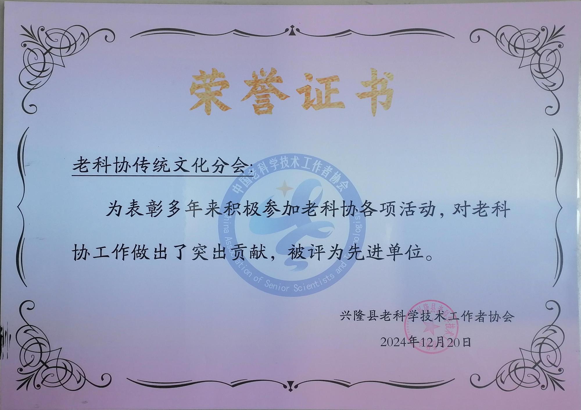興隆縣老科協(xié)傳統(tǒng)文化分會榮獲先進(jìn)單位稱號